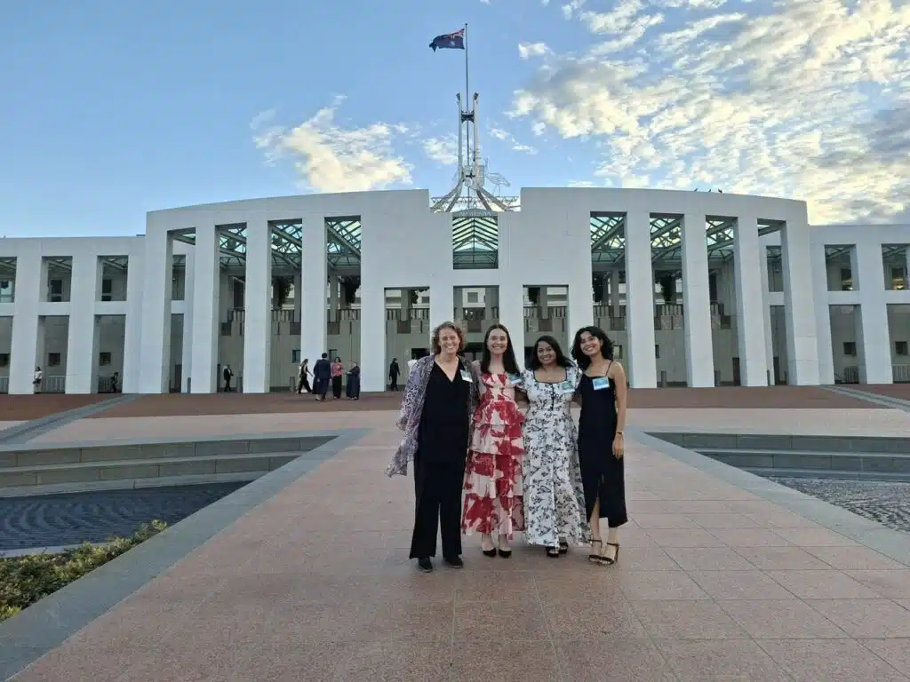 ASCEPT delegates (L-R) A/Prof Nicola Smith, Dr Aili Langford, Dr Varuni Premaratne and Dr Abhipree Sharma in front of Parliament House.